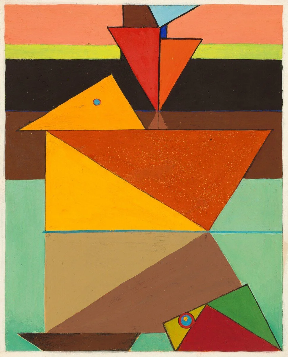 A series of fifteen small tempera paintings of a fanciful universe inhabited with triangular creatures. The series was based on conversations Steichen had with his brother-in-law, Carl Sandburg, who had just written the Rootabaga Stories. Created over several years in Voulangis, using extreme and mean ratio (the golden mean), and rarely seen. The series was donated to the National Gallery of Art in Washington, DC in 2011.
